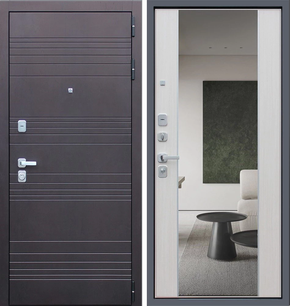 Надежная входная Дверь Дуэт с зеркалом премиум класса по цене 47 261 руб. Большая толщина стали защитит от проникновения в ваш дом, квартиру или коттедж. Используется очень качественная фурнитура: замки, цилиндры, ручки, защелки. Покрытие и отделка двери изготовлено под внимательным контролем производителя. Дверь имеет долгий срок службы и гарантию.