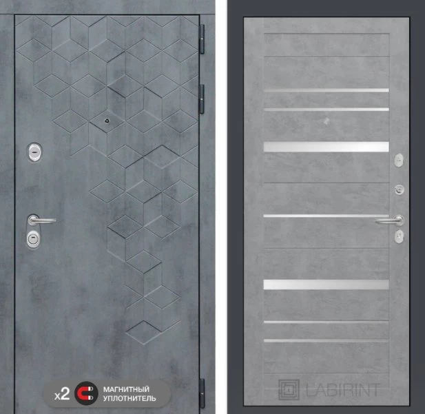Дизайнерская входная Дверь Бетон класса Люкс с несколькими листами стали, звукоизоляцией и теплоизоляцией. Утепленный короб и полотно защитят от сквозняков и шумов. Модель не только надежная, комфортная, защищенная и высочайшего качества, но и очень красивая! Будет отлично сочетаться с интерьером дома, квартиры или офиса. Сейчас действует выгодное предложение по цене: 54 111 руб.